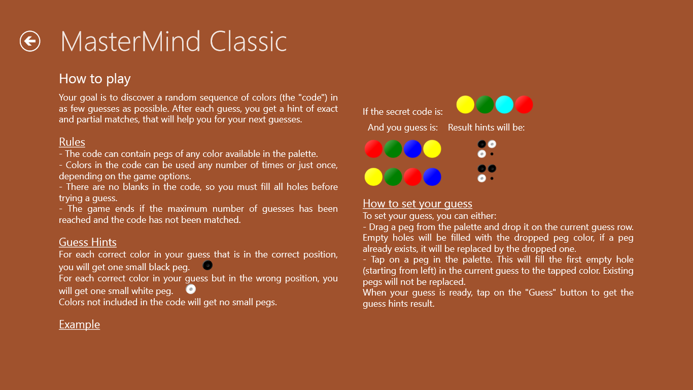 Shop Our Great Selection of Buy mastermind board game Save. At each turn the player chooses a combination of coloured pegs and the computer returns one black dot for each peg on the right position and one white dot for each peg present in the combination in a different position. Exercise your brain with the popular puzzle game with the colored pins.